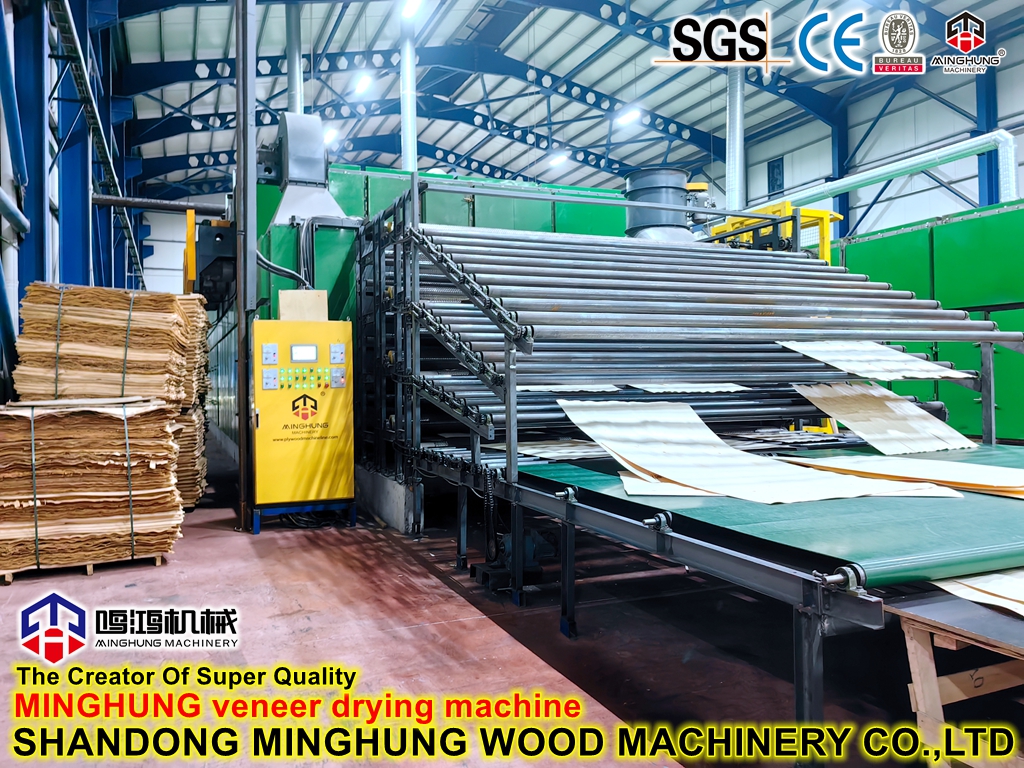 What is a veneer dryer?MINGHUNG Roller veneer dryer for drying original wood veneer, remove abundant humidity, in the end, the wood veneer humidity will be 5%-10%, so it is suitable for making plywood.Veneer roller dryer are suitable for big drying capacity per day, it can be different length, width