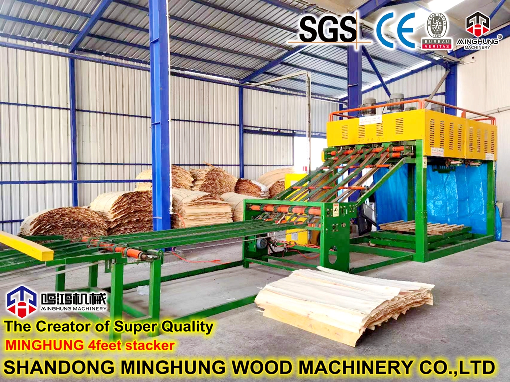 Veneer Conveyor & Stacker: Automatically conveys, aligns, and stacks the green (wet) veneer sheets into piles, preparing them for the dryer.
